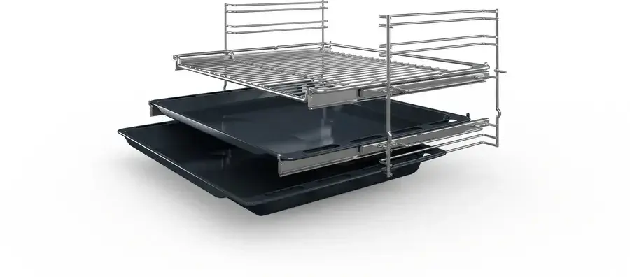 Designed with EcoClean Direct, the oven’s back panel, ceiling, and side liners feature a special coating that breaks down grease automatically during cooking. The two-level telescopic rails make tray handling safer, while SoftClose and SoftOpen door features ensure a gentle touch every time. With eight heating functions, including grill, pizza, and bottom heat, you’ll have the versatility to explore every dish with confidence.