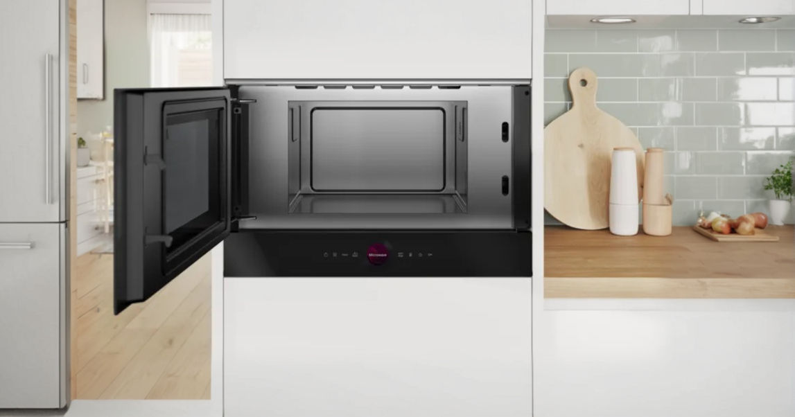 Perfect for high-end kitchens, this microwave fits into a 60 cm wall cupboard and operates with quiet efficiency, thanks to its integral cooling fan, soft LED lighting, and silent electronic door release.