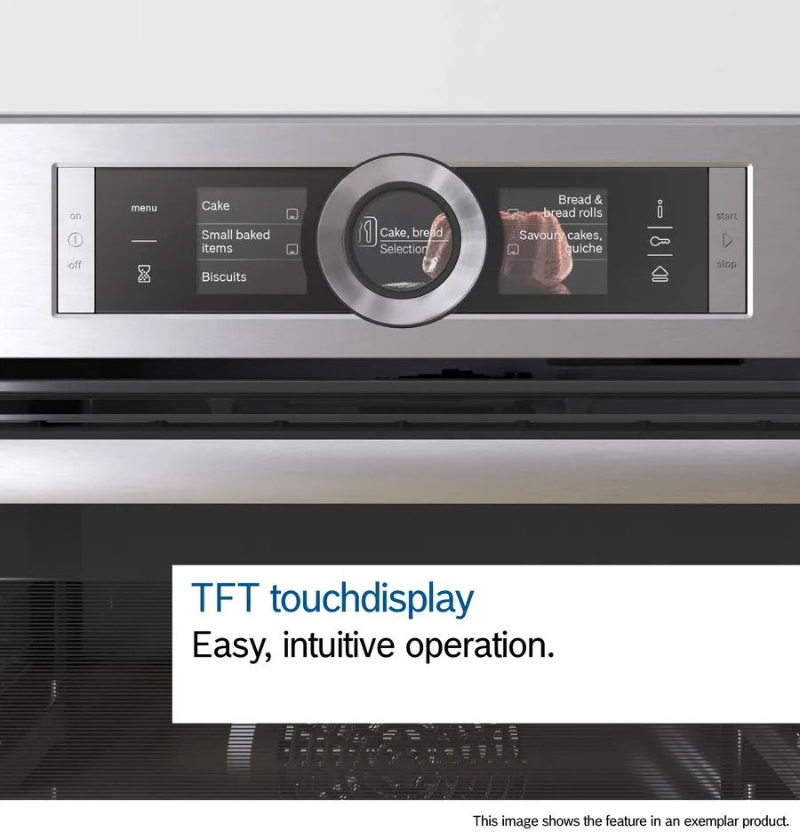 Featuring 13 heating methods, including 4D Hotair, pizza function, and low-temperature cooking, this oven offers unparalleled versatility. Its intuitive TFT touchscreen display and Bosch control wheel make navigating cooking modes effortless, while the pyrolytic self-cleaning function keeps maintenance worry-free.